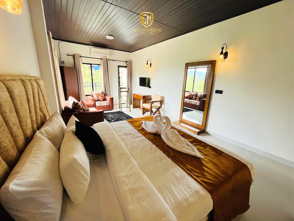 YouExperience the ultimate comfort in our Deluxe Double Room at Hotel Mandakini. This room is designed for relaxation, featuring a private balcony with breathtaking views of Ella's iconic mountains. Enjoy modern amenities, a plush King-sized bed, and high-speed Wi-Fi. Located just a short walk from Ella town, it's the perfect base for your adventures.’ll love all the attention to detail in this stylish place.