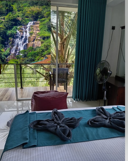 private room with balcony Waking up to lush greenery and beautiful mountain and waterfall views — you can even see a small waterfall from the room. Views of Ella Rock and the nearby train tracks across the Black Bridge — great for photos. Surrounded by vegetable cultivation and birdlife, including peacocks. It’s about a 15-minute walk or a short tuk-tuk ride from the heart of Ella, making it a peaceful base for exploring local attractions like Little Adam’s Peak and Nine Arch Bridge.