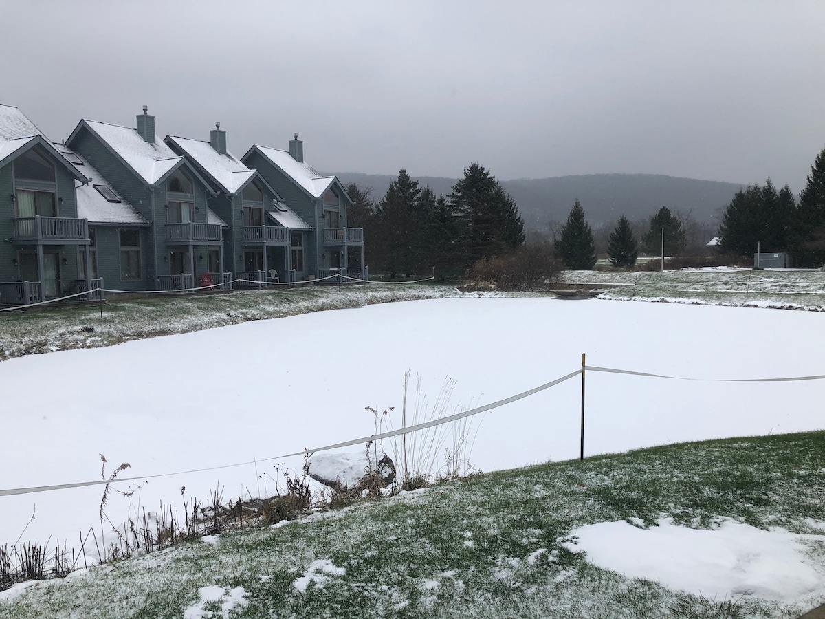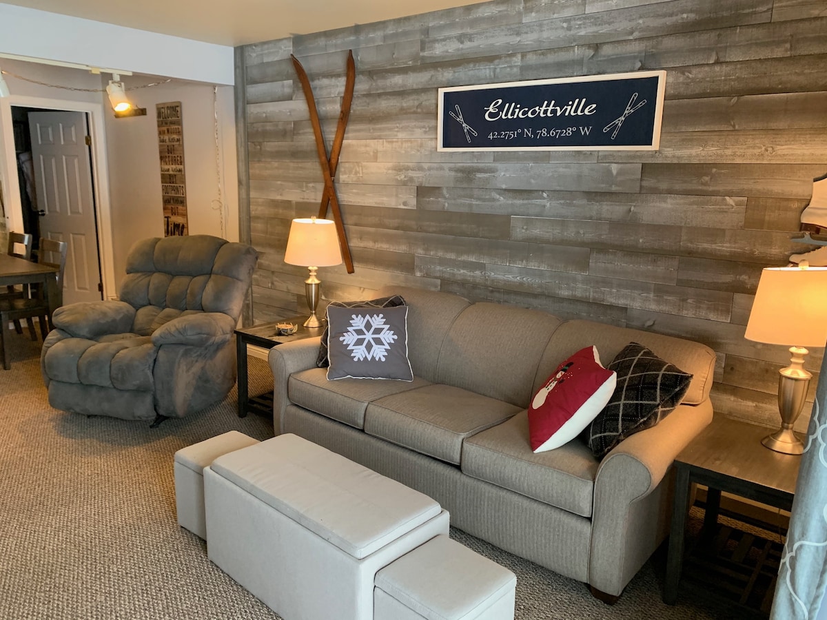 Enjoy a tastefully updated townhouse conveniently located for four-season fun. Walking distance to HV (or take the shuttle). Easy walk to the quaint village of Ellicottville. The space: Six guests can enjoy this cozy townhouse. 1-bedroom private loft . Super comfortable Murphy bed on the main floor, and sleeper sofa. Fully stocked kitchen and farm table to enjoy meals. Updated bathroom. Quaint living room with access to patio to enjoy the outdoor scenery. View of the ski slope from patio.
