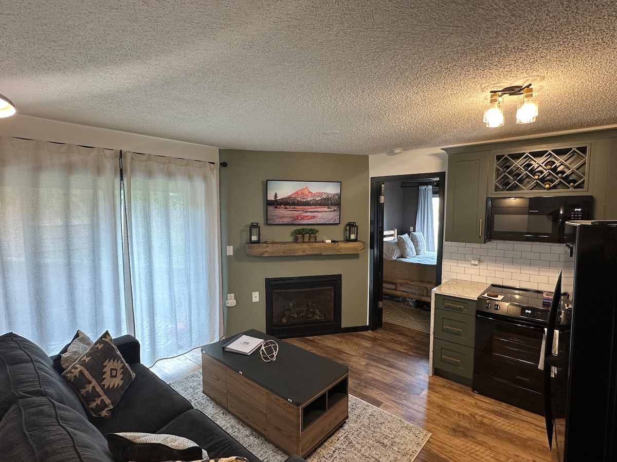 滑雪进出公寓,加大双人床+壁炉