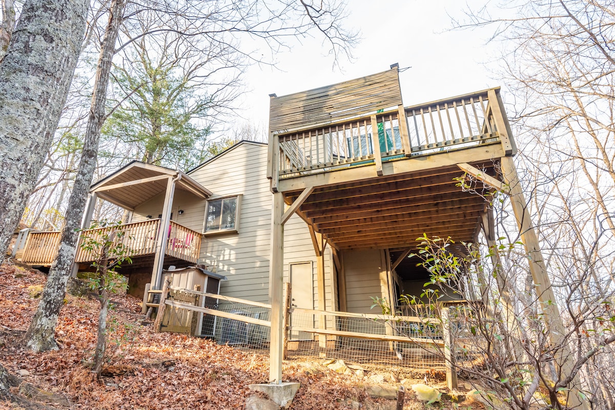 The Hilltop Haus is our home away from home. A little vintage A-Frame, nestled in the woods, with breathtaking year-round views of the Blue Ridge mountains. We're so excited to share our private getaway with you. Our cabin is just minutes from all the restaurants and shopping you could ask for. Nature filled activities surround us- hiking, world class fly fishing, white water rafting, and more! You can expect to be immersed with nature, privacy, and absolutely incredible sunsets.