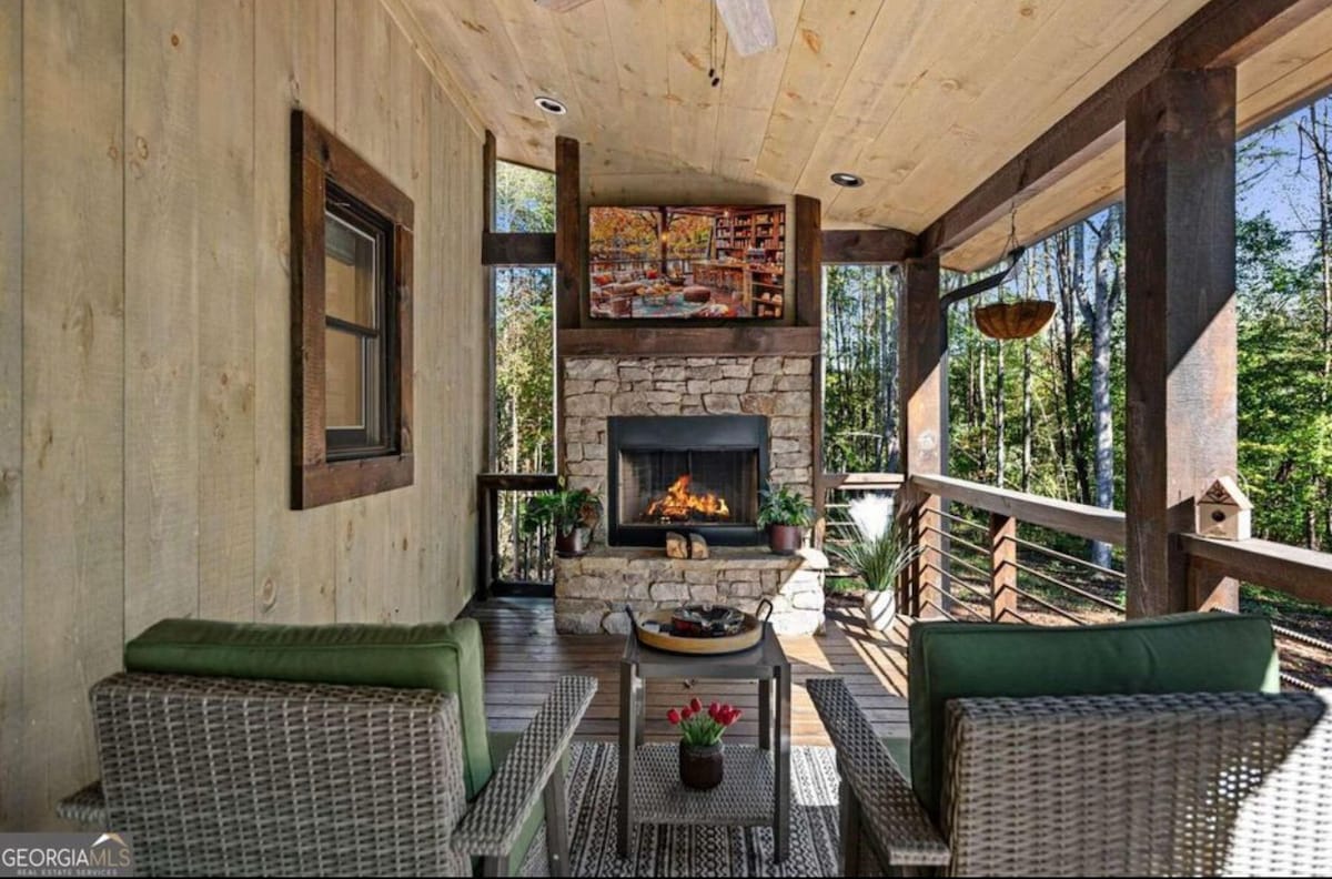 Find comfort and relaxation at this cozy 2 bedroom 2 bath mountain condo. Tucked away in the Appalachian Mountains, Bearfoot Retreat has every creature comfort you could want to make your stay feel like home away from home. Featuring a wood burning fireplace, lake and rockslide view, with an outdoor bar overlooking the woods - this is the retreat you've been looking for, with all the modern amenities; a coffee bar, 70 in smart tv, Smart Home and more.