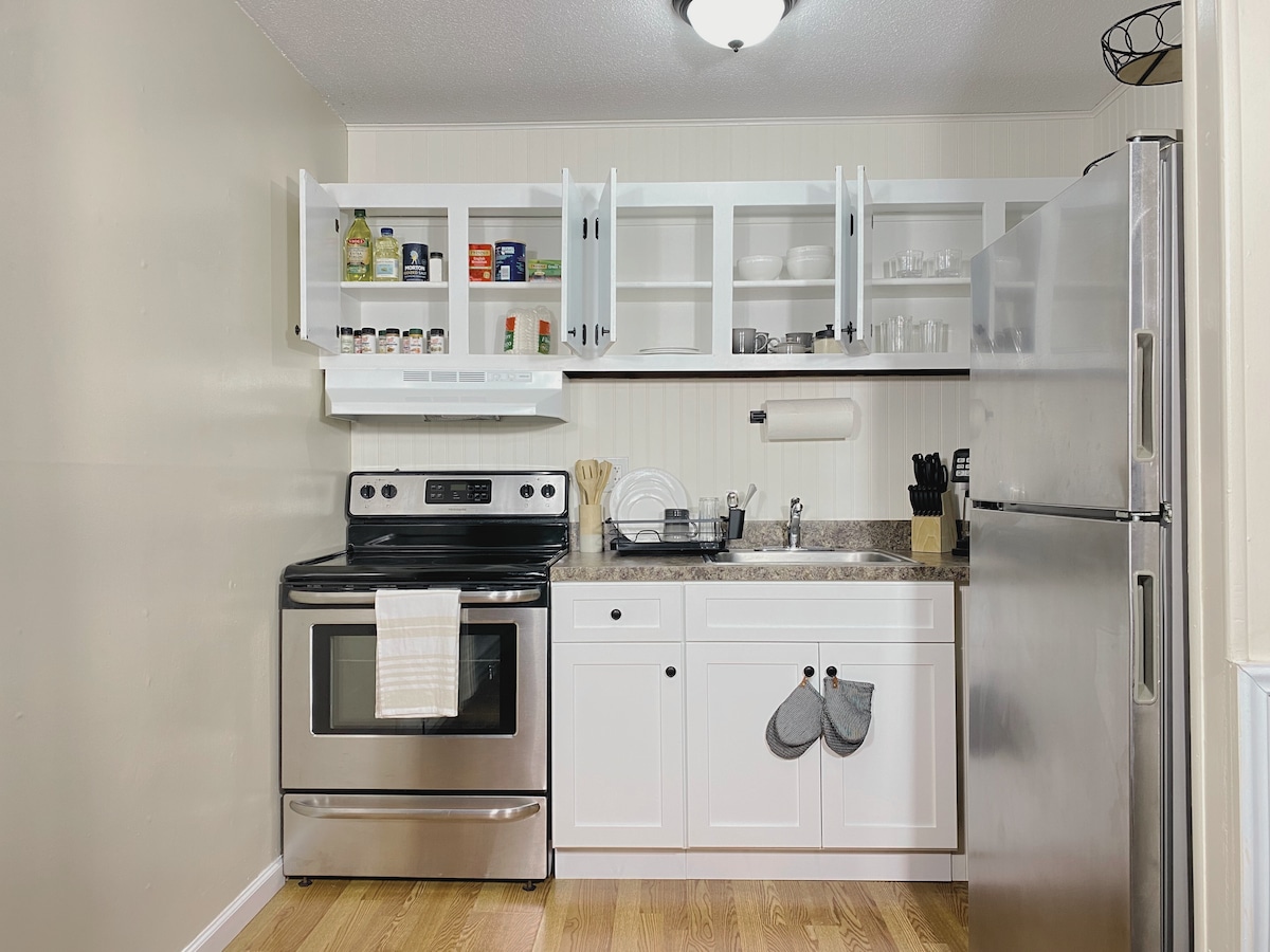 Welcome to our charming and stylish upstairs apartment, perfect for a cozy retreat! Enjoy the privacy of having the entire space to yourself. Access the apartment directly through the back entrance, up the outdoor staircase. We're conveniently located just a 10-minute drive from Bradley International Airport. Inside, you'll find: - A comfortable bedroom with a Queen-sized bed, complete with fresh linens - A fully stocked kitchen, equipped: Pots, pans, baking dishes, etc Washer and dryer