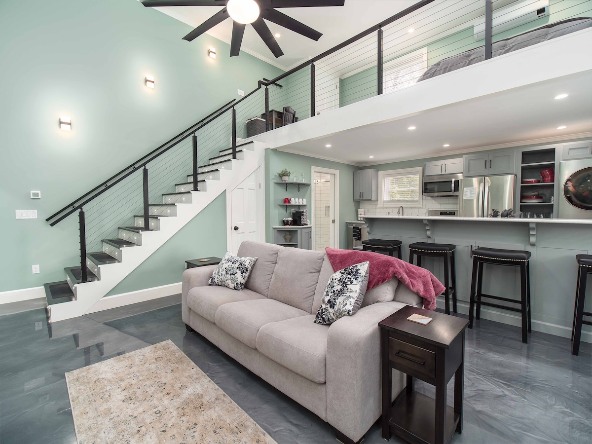 Enjoy a piece of history when you stay in our former trolley station that has been converted into an industrial style loft. Just outside the city limits in a country setting but close to the hospital, local bars/restaurants and the comedy center. The lower portion of the building features a quaint gift shop and across the street is a farm stand with locally grown food.