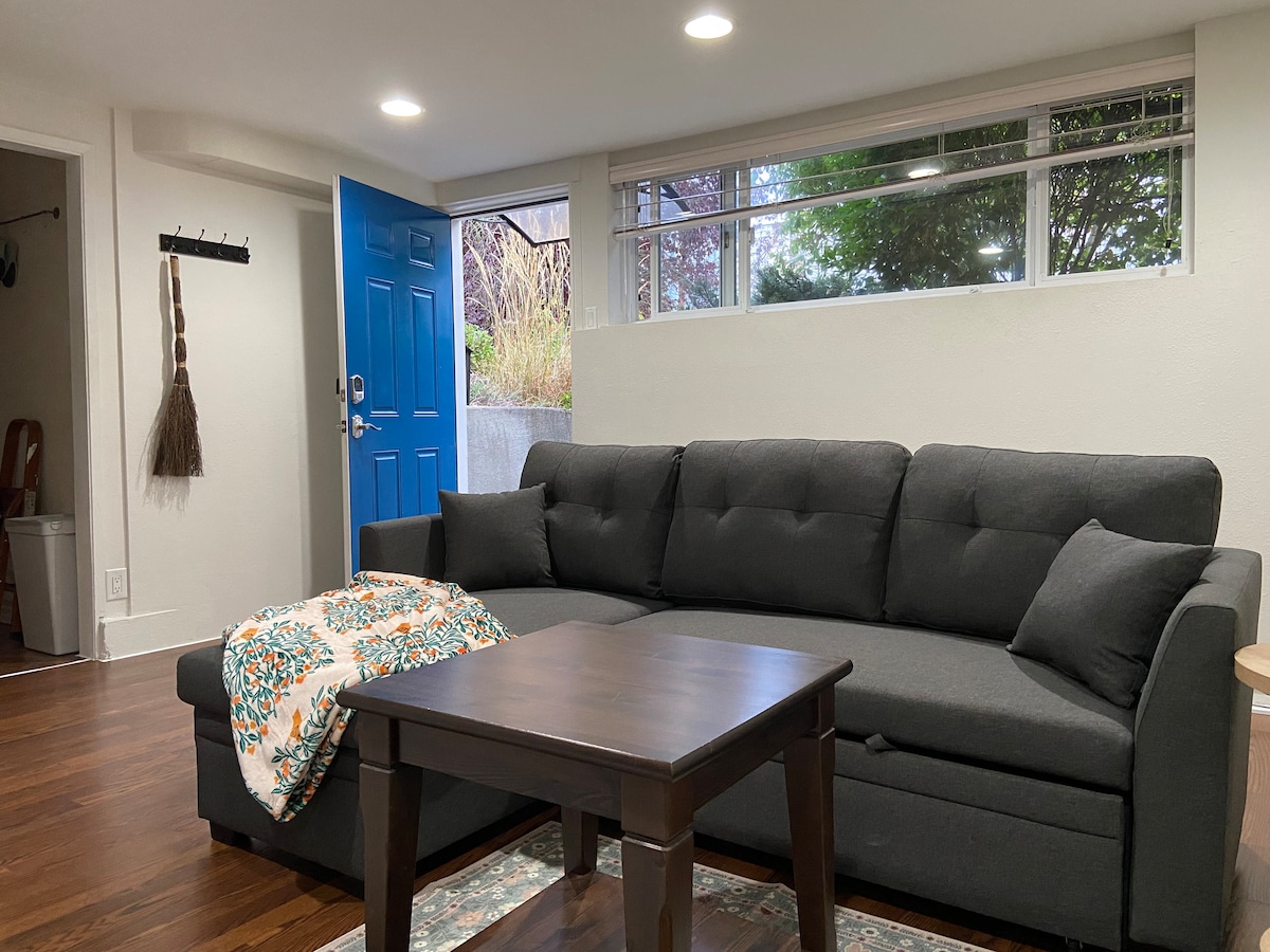 Inspired by the show Tiny House Nation, I thought it would be fun to convert my small detached garage into my vision of a comfortable and modern living space with all the amenities. It's approx. 210 sq ft or 11 x 19 ft but has the feel of a much larger place . We are located in an amazing spot on the top of Queen Anne. Macrina's Bakery is just 100 ft along with the #2 Metro bus to take you downtown in just 10 minutes. We feel lucky to live in such a beautiful neighborhood!
