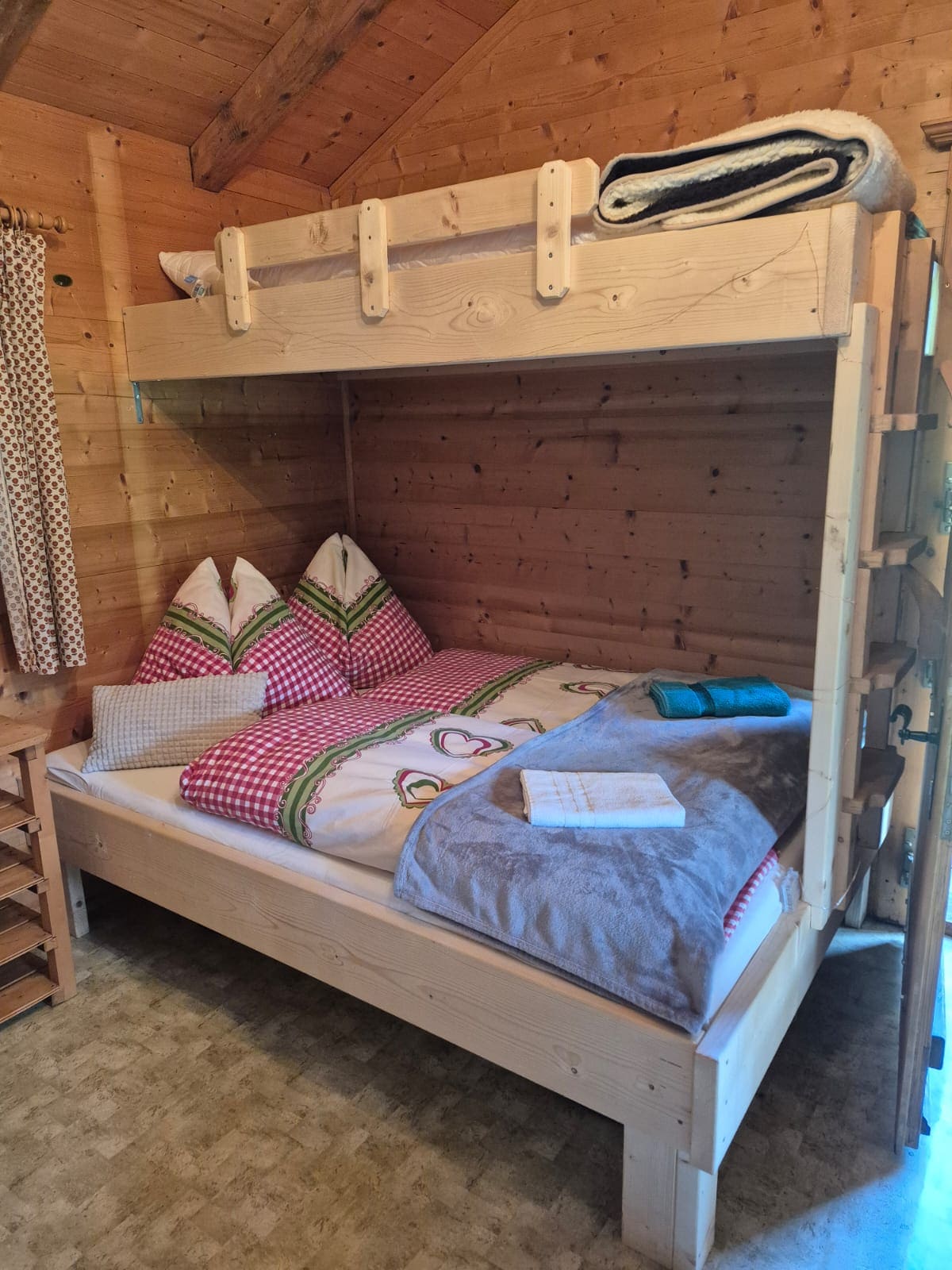 Dieses liebevoll eingerichtete Blockhaus mit Balkon bietet alle Annehmlichkeiten, die man sich nur wünschen kann. Die Küche ist voll ausgestattet, das Ess- und Wohnzimmer für große Gruppen ausgelegt. Das zentrale Herzstück des Holzhauses ist unser großer Speicherofen, der das Haus im Winter gemütlich warm hält. Das Häuschen befindet sich in der Innlände kurz vor der Grenze zu Österreich. Dadurch habt ihr hier schnellen Zugang zu allen möglichen Bergsportarten und einen tollen Blick!