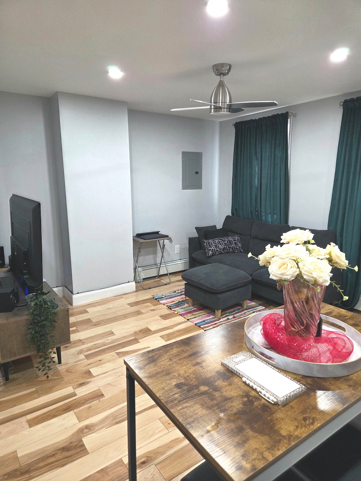 Discover my Renovated sunlit 2-bedroom (railroad) retreat, perfect for family or friends. In This apartment features easy access and is nestled in a tranquil area in Ridgewood and a 5 minute walk to Bushwick. 15 minute walk from the Dekalb L, and 10 minutes from the M trains. 25 minutes to the heart of Manhattan via train or car. Near markets, restaurants (ROLOS), bars, coffee shops! 25 minutes from JFK, 20 minutes from LGA. Animals allowed (additional cleaning cost may )
