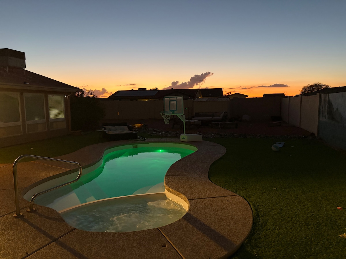 Escape winter & bask in Arizona sunshine! Your private 3BR/2BA retreat offers an open floor plan, office, and La‑Z‑Boy hot tub under starry skies. Enjoy a chef’s kitchen, king suite with soaker tub, and resort‑style fun— trails, sports, playgrounds & fishing pond. Relax, recharge, and book now before winter dates disappear! Your 30+ day rental includes an option to purchase a full access pass to the community center, fitness facility, pools & discount at the 18 hole Poston Butte Golf Course.