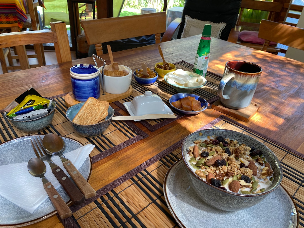 Acogedor departamento interior de 40 m² con dormitorio, cama de dos plazas, baño privado y cocina equipada. Muy soleado con amplia terraza y vista panorámica: al norte, la Cruz del Tercer Milenio; al sur, la bahía de La Herradura. Ubicado en un entorno tranquilo, hermoso jardín. Decorado con artesanías y antigüedades, ofrece un ambiente cálido, limpio y confortable. Ideal para descansar o trabajar como nómada digital. Internet, estacionamiento, incluyendo un exquisito desayuno continental con❤️