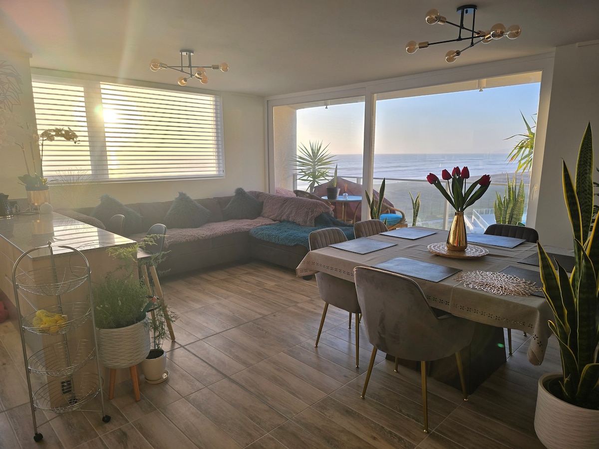 Imagina despertar con una hermosa vista hacia el mar. Este encantador departamento, totalmente equipado y pensado para tu comodidad, te invita a vivir la magia de la playa con la calidez de un hogar. Ubicado frente a la playa, puedes disfrutar de un día soleado. Con habitaciones diseñadas para brindarte el máximo confort. Te ofrecemos todo lo que necesitas para que tu estadía sea inolvidable. Ya sea que busques desconectar del ajetreo diario o disfrutar de momentos en familia cerca del mar.