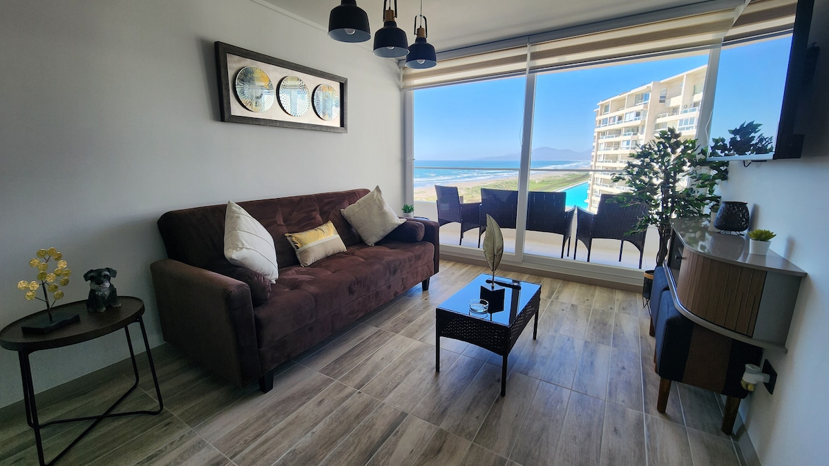 ¡Bienvenido a tu nuevo oasis junto al mar! Este departamento completamente nuevo, ubicado en el exclusivo Condominio Laguna del Mar, cuenta con 5 piscinas, playa privada, laguna navegable y acceso directo a las playas y al mar. Además de sus maravillosas vistas, el complejo ofrece kioscos, cafés, zona de quinchos, salón de eventos, canchas de tenis, vóleibol, circuito de trote y área deportiva de calistenia para disfrutar de un estilo de vida activo y relajado.