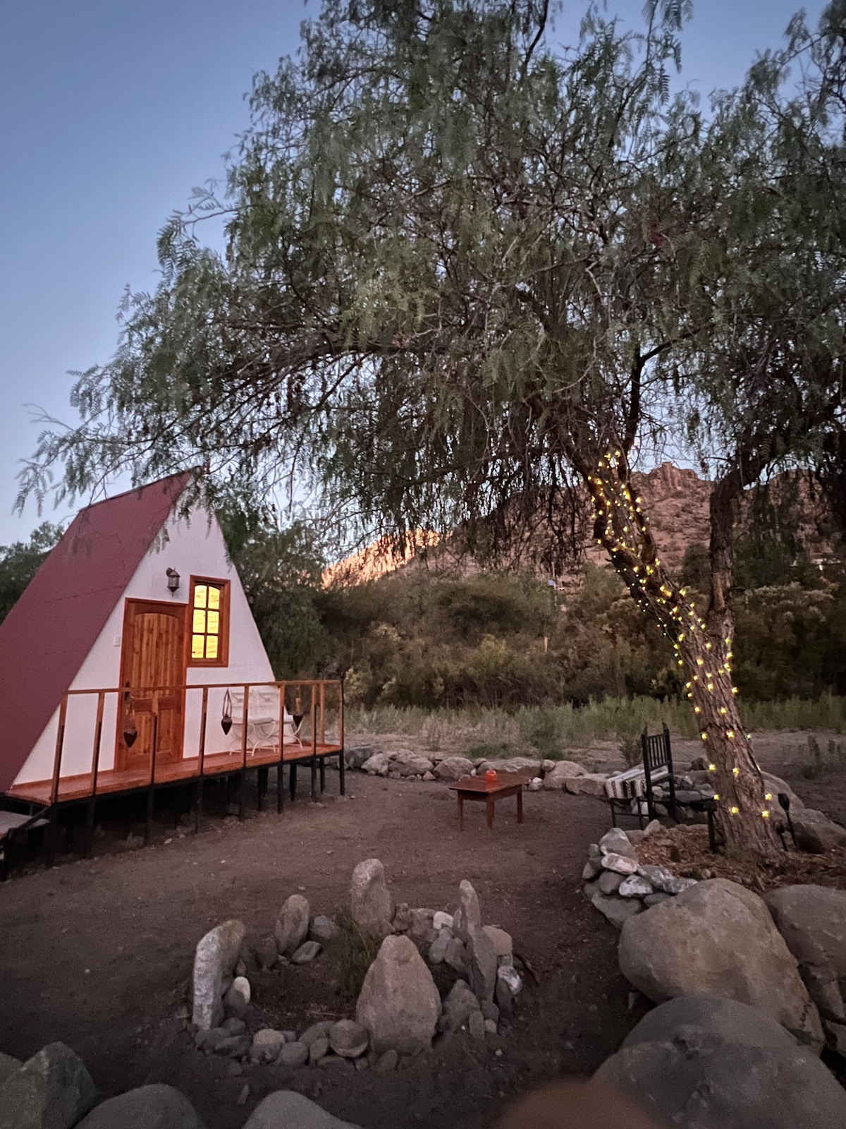 CABAÑA JARACANDA UN LUGAR TRANQUILO RODEADO DE NATURALEZA IDEAL PARA DESCANSAR Y RELAJARSE A ORILLAS DEL RÍO CLARO SECTOR RURAL TOTALMENTE EQUIPADA, ACCESO FÁCIL Y SEGURO. CON PRIVACIDAD PARA ESTAR SOLOS Y CONECTARSE CON EL MEDIO TAMBIÉN CUENTA CON ESTACIONAMIENTO NOS ENCUENTRA EN HORCON BAJO COMUNA DE PAIHUANO . VALLE DE ELQUI IV REGION LUGAR DE SUEÑOS Y MAGICOS CON LAS ESTRELLAS Y LOS ARBOLES DE COMPAÑIA