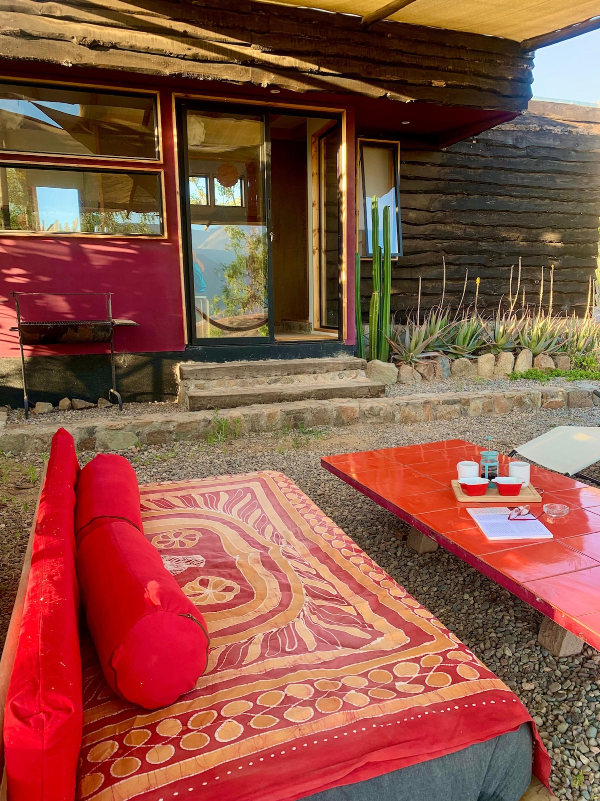 Escápate a nuestro refugio autosustentable, cálido y encantador. Disfruta de los cielos más claros del mundo para admirar la Vía Láctea. Con parrilla y cocina equipada para que prepares tus platos favoritos. Ubicación privilegiada a 5 minutos del Observatorio Mamalluca y del centro de Vicuña en auto. Vivirás lo mejor del Valle, aislados del ruido pero conectados con todo lo que importa. Clima ideal todo el año, caminatas , atardeceres alucinantes y noches estrelladas. Ven a vivir La Magia.