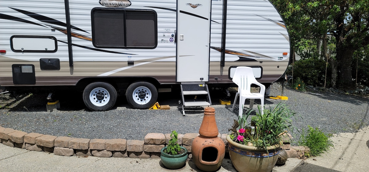 This site is nestled in the mountains between beautiful Port Angeles and Sequim, Washington. While this is next to our home, which is on 1.5 acres, it still is very private and quiet as it resides in the back behind our studio and garage. Your accommodations will be in a spacious 2013 26ft Wildwood Trailer. Outside you will sit at a covered picnic table or around a cozy fire pit with hummingbirds and birds coming to the surrounding feeders. There is also a small grass area for yard games.