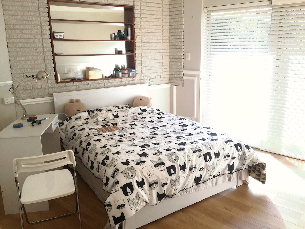 Prestigeous suburbs, 9km to CBD. Direct tram to CBD. 3.5 km from beach, famous bathing Houses. Morning wake up to the sound of birds. Free Parking & Wifi. 2 min walk to bus stop, 15 min walk to commercials, including restaurants, supermarket, banks and Asian groceries. Rooms are delight sun filled. Backyard is with basketball hoops. New electric appliance, including TV, washing machine, refrigerator, oven, dishwasher, microwave etc. 暂时脱离城市的喧嚣和拥挤,早晨在鸟鸣声中醒来....