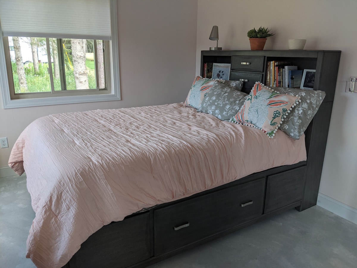 At the top of a rolling hill, surrounded by 20 private acres, sits a beautiful year-round one-bedroom cabin. Built by one of Ely’s top craftsmen, every detail blends a rustic setting with modern comfort, creating a warm and inviting retreat. A stunning wall of windows fills the cabin with sunshine. Thunder rolls overhead during summer storms, and snow falls softly outside in winter—while you stay cozy inside, feeling completely connected to nature. It’s truly a romantic place to stay.