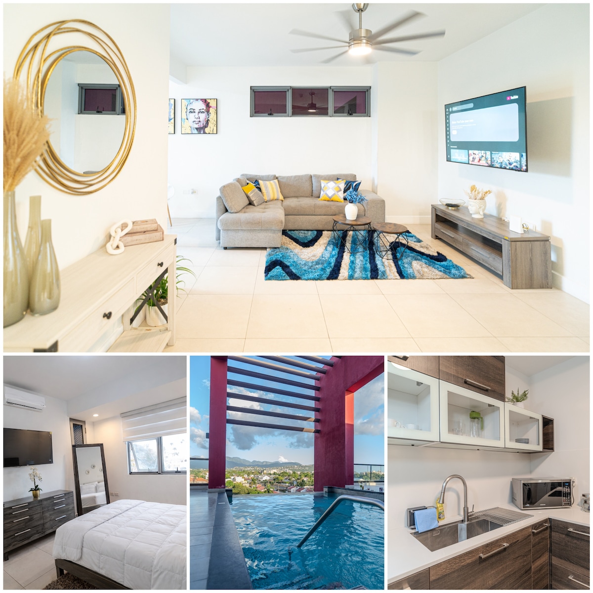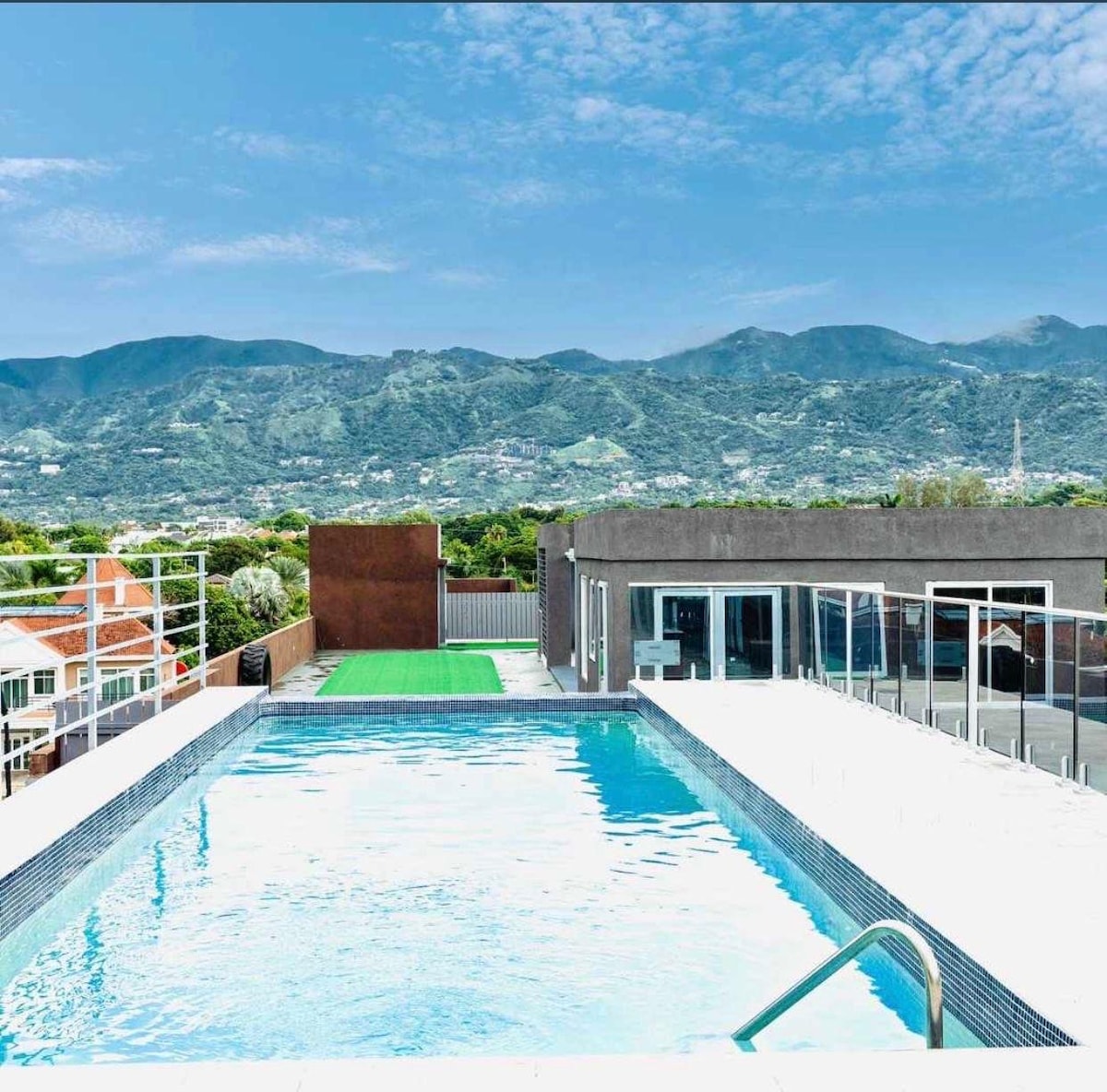 Your Modern New Kingston Oasis! Experience comfort and convenience in our spacious, centrally located 1 bed apartment in a newer gated high-rise. Just 25 minutes from the airport, you're near all the action yet can enjoy a peaceful retreat. Why you'll love it: 24-hour security Rooftop Pool and Lounge Wi-Fi & workspace Queen bed with ensuite bath & powder room Private balcony with stunning mountain views Ideal for business or relaxation – your perfect home away from home!