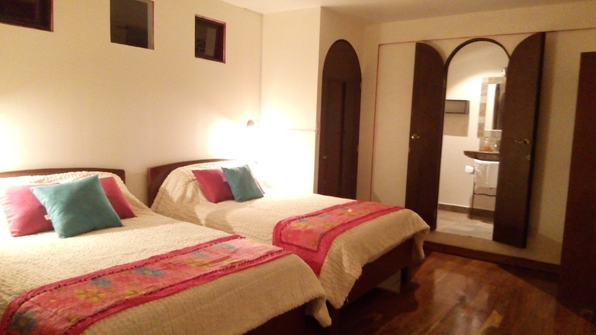 Habitación doble clásica La Cocada. En nuestra habitación más acogedora de la casa disfrutarán detalles que harán más dulce su estancia; que te recordará un bocado de La Cocada, típico dulce mexicano. Tiene baño propio y exclusivo, sin embargo se encuentra fuera de la habitación a 1.5m cruzando el pasillo. Cama Queen 153x200 Baño privado con ducha (Separado de la habitación – cruzando el pasillo). Wifi Escritorio y caja fuerte Esta suite ofrece 14m2