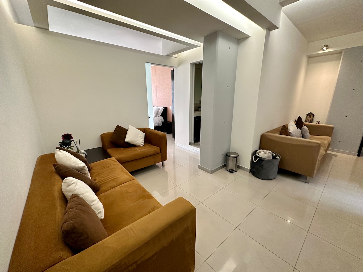 Loft de lujo entre Polanco y Palmas, ideal para una experiencia 5 estrellas. Cuenta con cama King Size, TV 75” con streaming, Wi-Fi de alta velocidad (100 Mbps) y una cocineta. Perfecto para viajeros que buscan confort y estilo. A pasos de tiendas de conveniencia 24h y una amplia variedad de restaurantes. Disfruta de la privacidad y comodidad de una suite premium, con todo lo que necesitas para una estancia inolvidable. ¡Te esperamos! Es perfecto tanto para viajes de negocios como de placer.
