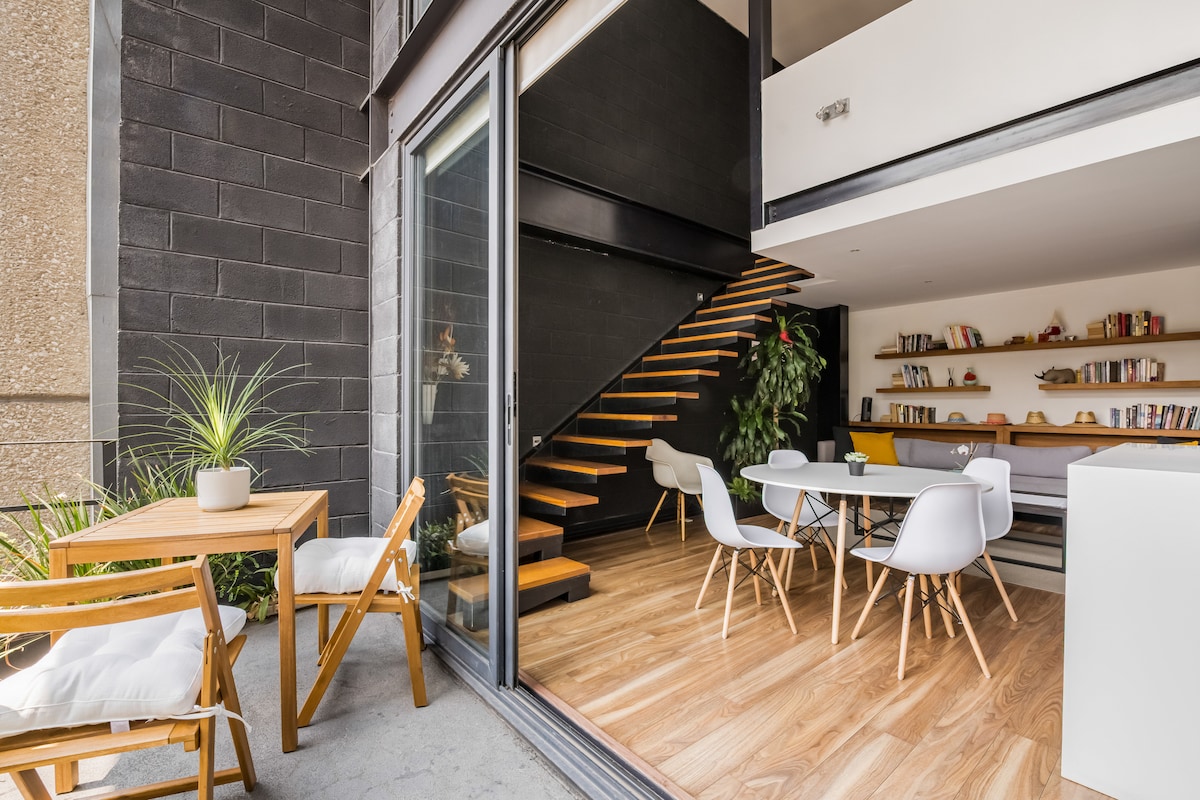 New and spacious two stories loft on an award winning renovated building from the 1940´s. Security 24/7 , personal digital code to access the apartment, wifi, fully equipped kitchen, Smart TV with Netflix/Mubi, and a shared laundry room in the building. The loft has one patio in the first floor and a huge terrace full of plants on the second floor next to the bedroom. It is usually very quite but there could be a little noise during the day if another apartment is doing renovations.