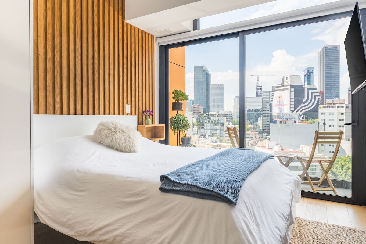 Enjoy one of the most amazing neighborhoods in Mexico City. This place is central and surrounded by restaurants, museums, and iconic landmarks within the city. The area is terrific and very well connected to the whole city. You will love the view from one of the tallest buildings in the city. Undoubtedly, it’s an outstanding place to stay and experience one of the best and biggest cities in the world.