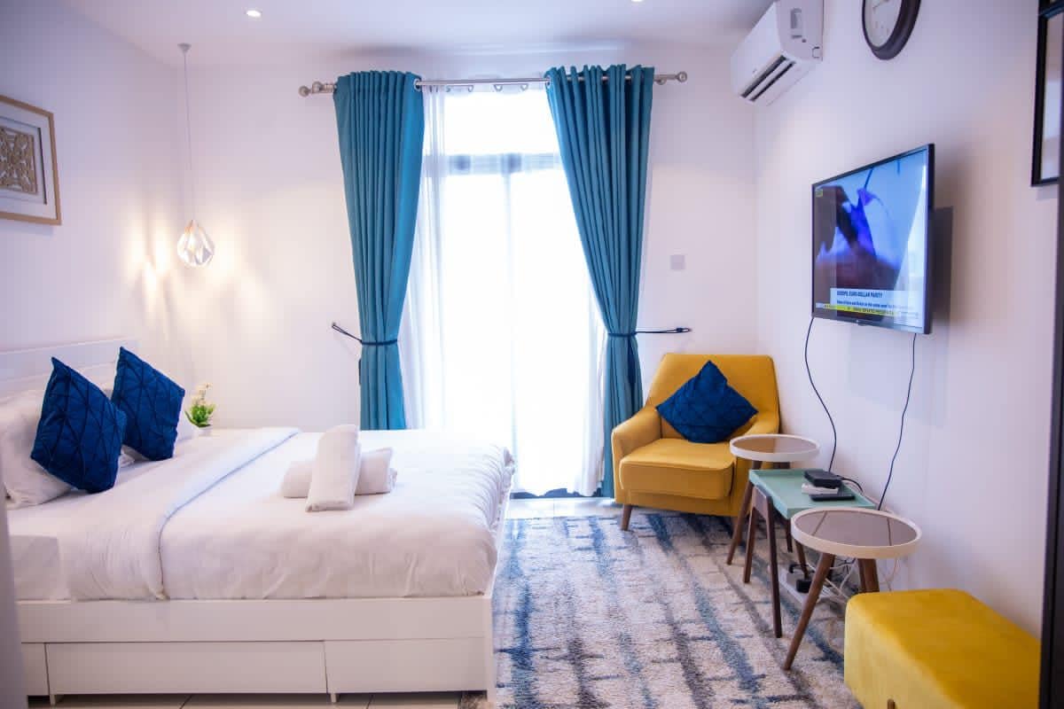 Explore Accra from a modern, functional and pristine studio apartment situated in the heart of the city. It's a generous space with a kitchen and balcony to make you feel at home. Settle in quickly when you arrive from the airport which is 10 minutes away and grab a meal from the bistro downstairs. There's free parking, free WiFi and manned security on the premises 24/7. Enjoy all the conveniences you'd expect from a modern city apartment. Perfect for both business and leisure travellers!