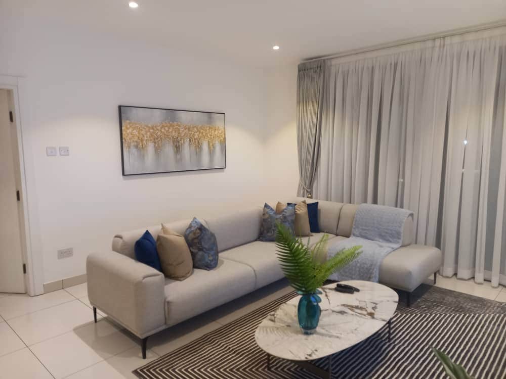 A stunning modern apartment located in prime Accra (Cantonments), Ghana. This contemporary furnished apartment, boasts modern fitted kitchen equipments and appliances, wifi, an intercom and a balcony. The location is also centrally located which is perfect for business travellers, shopaholics or those looking forward to enjoying the Accra nightlife.