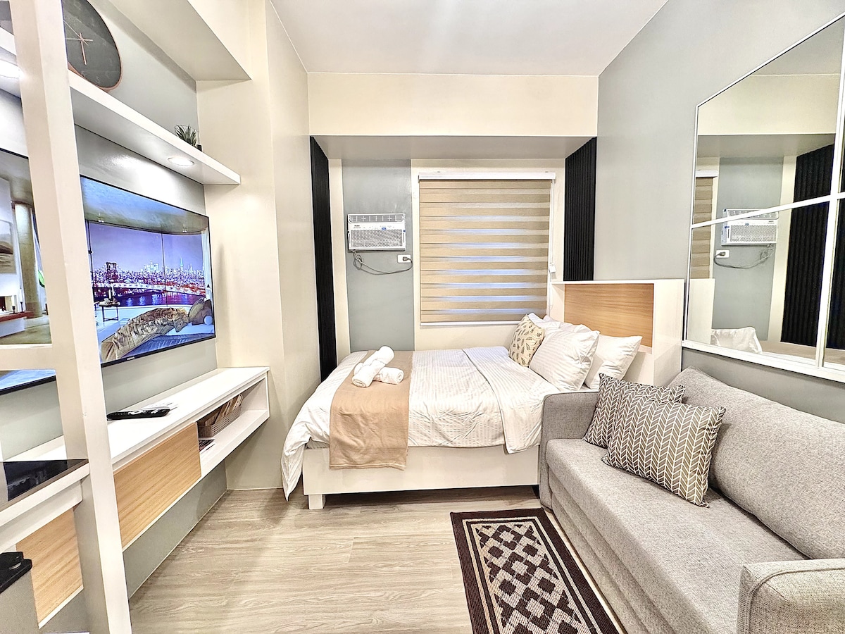 Looking for a budget-friendly staycation in the city of Manila? Then say no more. This comfiest studio is in Grand Riviera Suites Manila, situated in front of the US Embassy and the famous Dolomite beach. You can relax and enjoy your stay by taking a swim, or even working out the fats in the gym from the delicious meals which can be found within the vicinity. St. Luke's Medical Center Extension Clinic and malls, such as Robinson's Manila are also around the corner.