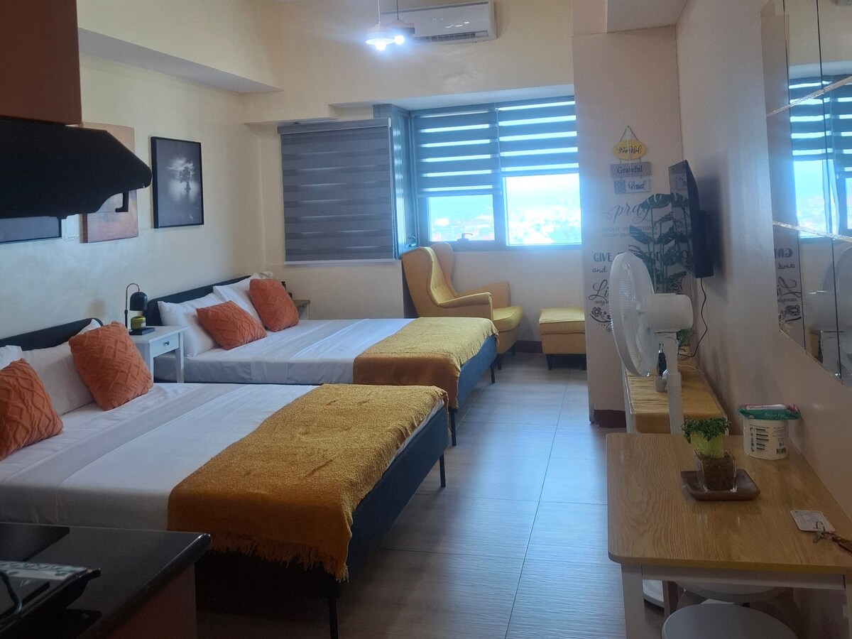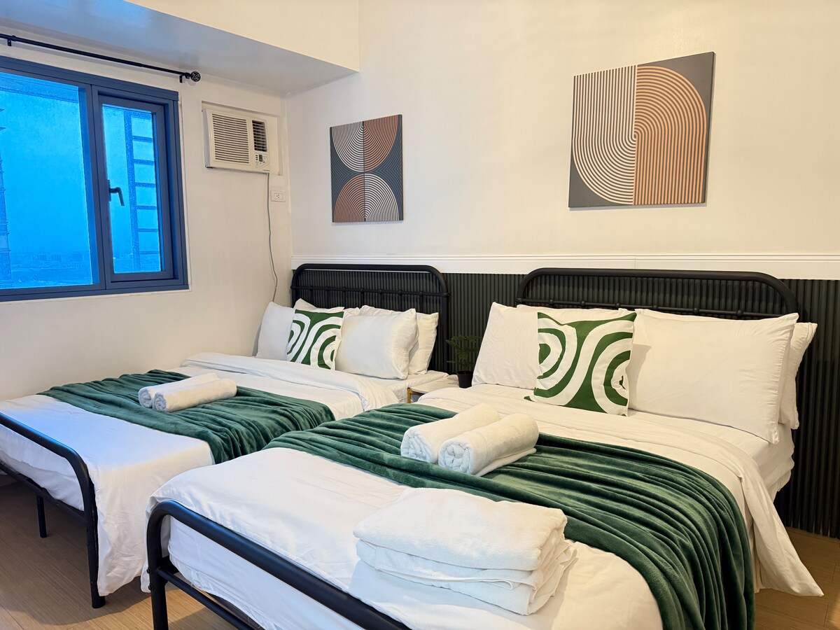 Cozy 40th-floor studio at Grand Riviera Suites, right across the U.S. Embassy Manila. Only 5 minutes to St. Luke’s Extension Clinic, 7 minutes to PGH Hospital, and close to Robinsons Place Manila. Perfect for visa applicants, medical visits, or short city stays. Fits 3 adults or 2 adults + 2 kids. Pool with fee, street parking nearby, and 24-hour security for a clean, safe, and convenient stay.