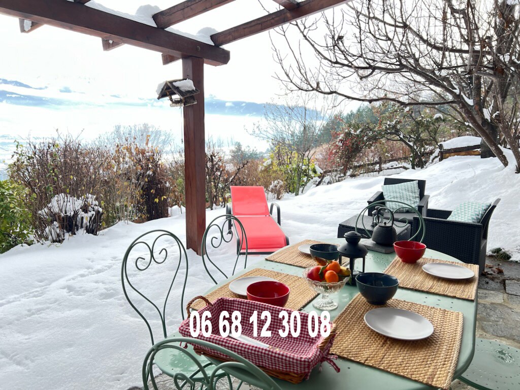Quiet close to shops, train station and Lake Serre Ponçon. Pretty house of 118 m2 with stunning views of the mountains.A spacious and bright living room with fireplace overlooking the south-facing terrace, an equipped kitchen, 3 bedrooms, 2 bathroom and 2 toilets . Linen and cleaning optional on request
