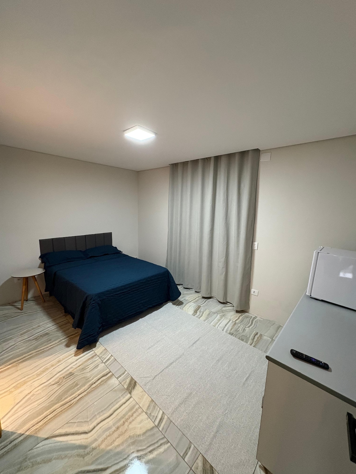 A Suíte tem um estilo único de Cabana com quarto/saleta e banheiro. Na varanda que dá vista do alto da Chácara , temos mesa para refeições, uma Copa com pia, fogão cooktop, microondas e utensílios de cozinha. Aceitamos Pet de porte pequeno e médio. A piscina é compartilhada com mais 5 Casas. Não somos Pousada, não temos serviços de alimentação. Aqui a nossa proposta é oferecer uma pausa na correria do dia a dia da cidade.