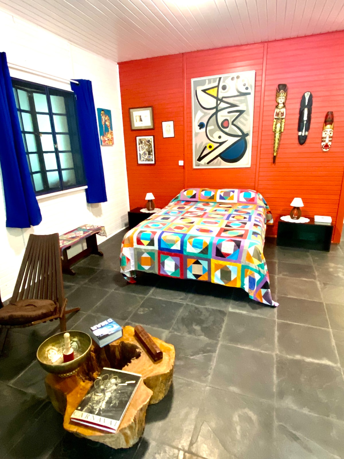 Get back in touch with nature at this architectural gem surrounded by rainforest. The residence features eclectic decor and furniture, wood finishes throughout, a grand piano, and outdoor dining and lounge spaces throughout the property. The property accommodates 12 guests. The price for 8 guests is the price per night that it is established. From 8 guest plus there will be an extra guest fee of 200 reais . The space is very nice to be because the forest is always surrounding scenery. A vegetable garden and cozy environments are throughout the property full of charm. O espaço é muito agradável de estar, pois a mata esta sempre rodeando os cenários. Uma horta e ambientes acolhedores estão em toda a propriedade cheia de charme. E perfeito para uma viagem em família. Há uma piscina aquecida. Toda a casa e seus Chales assim como a piscina aquecida são de uso exclusivo dos hóspedes. Uma trilha poder ser percorrida a pé em meio à mata Atlântica. Tenho caseiros na propriedade para que tenham uma estadia mais confortável. Cozinham e arrumam a casa a um custo de 300,00 reais ao dia The home is located close to the historic center of Embu das Artes. The town is home to artisan shops, restaurants, and a vibrant arts and crafts community. Não há transporte público perto Melhor ir com condução particular, táxi ou Uber Ha caseiros na casa que tomam conta da propriedade e dos hóspedes. Custo dos serviços e de 300,00 reais ao fia para arrumação e cozinha.