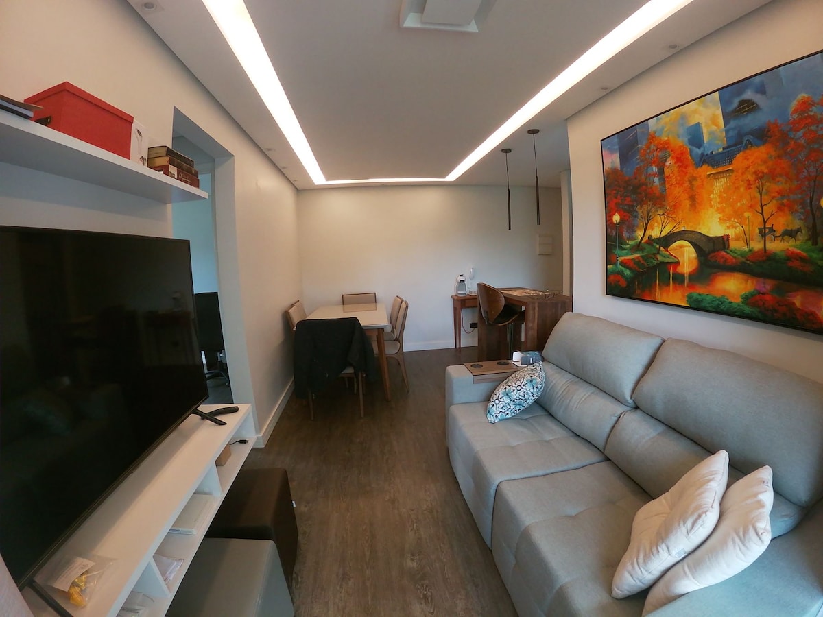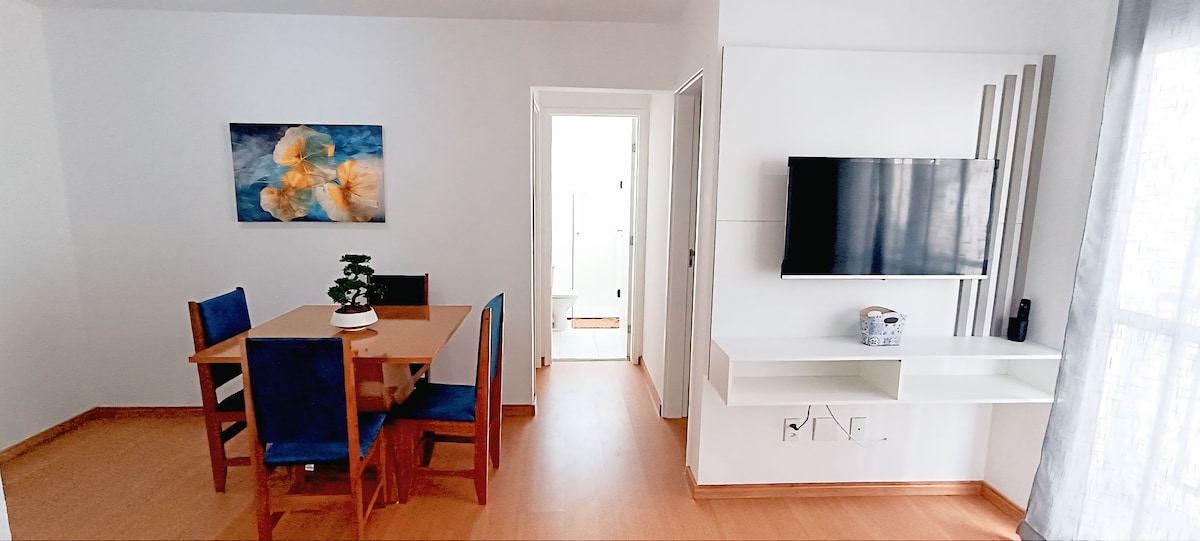 Conforto, charme e praticidade. •Ambiente claro e arejado, ideal para descansar, trabalhar ou curtir com a família. •Cozinha equipada, Wi-Fi, TV e itens essenciais. •Localização estratégica: perto do centro histórico,restaurantes, outlets e fácil acesso a São Paulo e região, ao lado do rodoanel. •Condomínio fechado com segurança 24h, quadras, playground externo, academia ao ar livre e pista de caminhada. -Perfeito para casais, famílias e viajantes a trabalho. Reserve e curta essa experiência