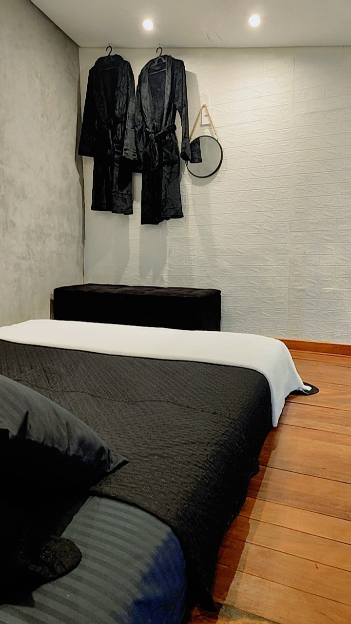 Nesse espaço celebramos a beleza da diversidade. Seu amor é bem vindo! A Suíte tem um estilo único de Cabana com quarto/saleta e banheiro. Na varanda que dá vista do alto da Chácara , temos mesa para refeições, uma Copa com pia, fogão cooktop, microondas e utensílios de cozinha. Aceitamos Pet de porte pequeno e médio (consulte manual do pet) A piscina é compartilhada com mais 5 Casas. Aqui a nossa proposta é oferecer uma pausa na correria do dia a dia da cidade.