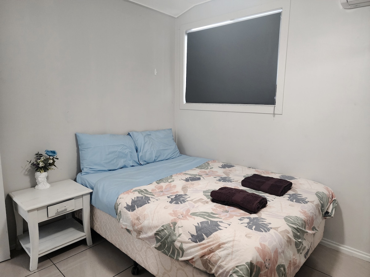 This is a simple, clean, and functional guest unit, ideal for guests who need a quiet place to sleep and rest. The unit includes two bedrooms, a bathroom with separate toilet, air-conditioning, and a basic kitchen suitable for light cooking. It is not a modern or luxury unit, but it is well-maintained, affordable, and comfortable. Perfect for workers, short stays, or budget-conscious guests looking for convenience and value. Walking distance to Hospital, Maraboon Tavern, McDonald’s & Woolworths