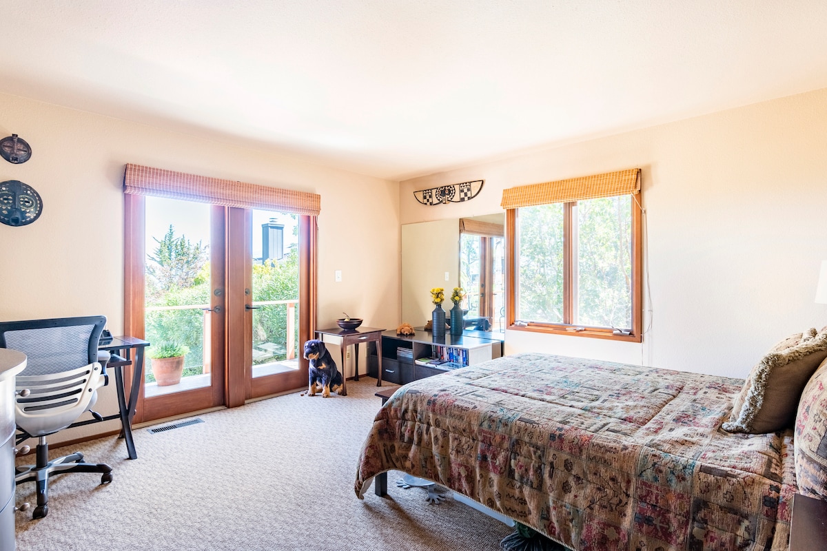 The sunny & private guest suite features a newly remodeled en-suite bathroom and kitchenette. The suite has spectacular views of the backyard with mountain views and a fire pit. Spacious and luxurious, has plenty of storage for a comfortable stay. This guest suite is part of a ~3000 sq ft luxury single-family home and you will have your own entrance into your space from the backyard. You can also rent the full house when available.