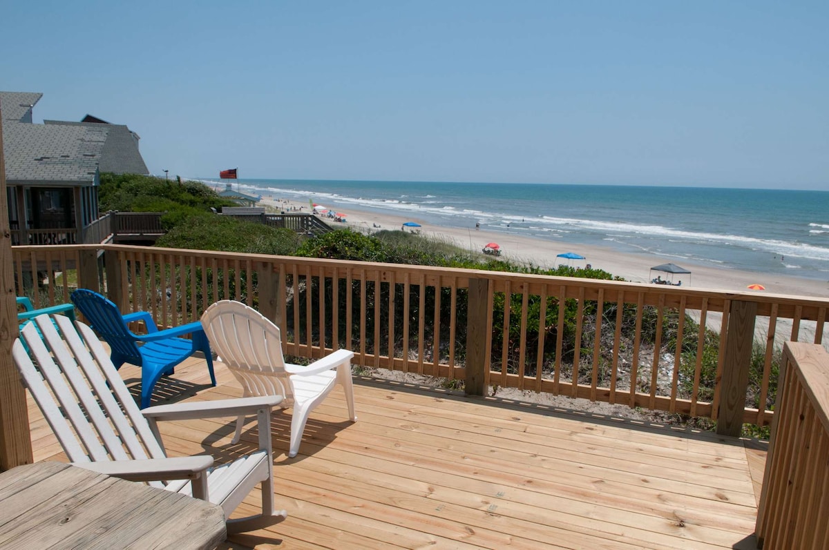 ATLANTIC OCEANFRONT Quiet dead end street right on the Atlantic. No one within 100 feet on each side of the home. Outstanding location & View! BEDS MADE Bath Linens Provided. Covered deck with 6 high chairs to see the Sunrise & Sunset. Hear the waves, watch the pelicans and dolphins swim by daily. Outdoor shower with hot & cold water. King memory foam Bed in master suite. 3 mi to Surf City bridge. Large screen smart TV /Roku.