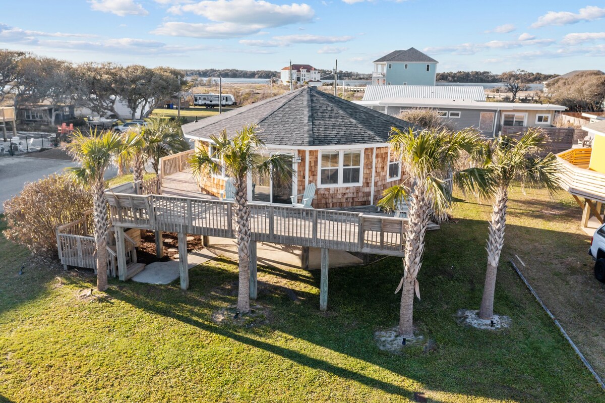 Excellent views of the ocean from the spacious deck in the middle of the island. Enjoy your morning coffee & watch the dolphins swim by as you relax in the wonderful gazebo. Beach & pier can be had from the 3 sundecks complete with hot tub, deck furniture & benches. Transportation is not needed as Surf City Heart is centrally located within walking distance of restaurants, shopping, groceries, parks/playground boat tours and more. Direct private beach access from the back deck.