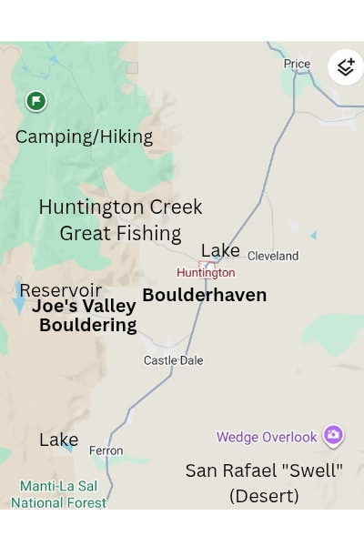 Boulderhaven is located in a half a block from Main street in Huntington, Utah. We think you will have a peaceful feeling here. It is centrally located for all your outdoor adventure activities. There are also amenities such as a mercantile-type store that basically has "everything", and a Mexican "dive" cafe. Here, you are very close to the Bouldering Capital of the World, the Manti-La Sal national forest, and the San Rafael Swell (desert)! For more details visit boulderhaven.info