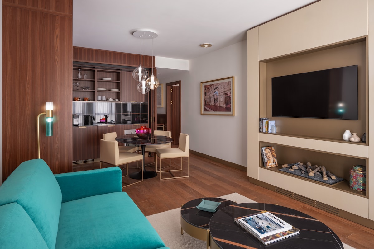 Our Studio Flats offer a complete solution for those seeking independence and comfort in compact yet fully equipped spaces. Each apartment, measuring between 40 and 55 sqm, includes a fully equipped kitchen, a living area with smart TV, generous wardrobe space, an elegant bathroom and a cosy sleeping area. The functional layout makes them ideal for business travellers as well as tourists who want to explore Florence while enjoying the comforts of home.