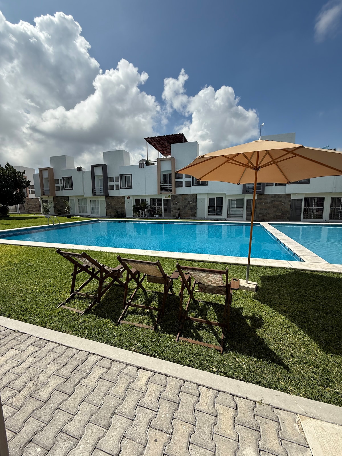 Hermosa casa de tres recámaras y dos baños, situada en residencial con amplia alberca y áreas verdes, así como con seguridad privada. La casa cuenta además, con dos salas y un roof garden con asador y fantástica vista para que tus reuniones sean un éxito. Tiene un patio trasero para mascotas. Esta casa es perfecta para familias o grupos pequeños que buscan un refugio tranquilo y una divertida experiencia acuática.