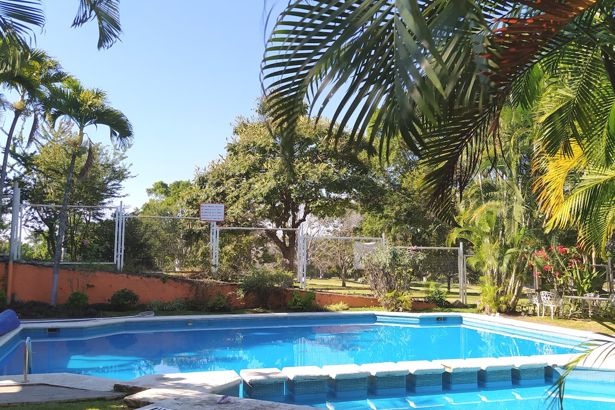 Descansa en este pacífico y cómodo alojamiento. Durante gran parte del año disfruta del relajante sonido del agua de la cañada que rodea la propiedad. Gracias a este entorno natural, contamos con exuberantes áreas verdes en un gran ambiente familiar. Dispone de 2 albercas ( de martes a domingo), seguridad las 24 horas, y estacionamiento privado. Ubicado a 8 minutos del centro de Cuernavaca, a 12 minutos de centros comerciales y 5 minutos de la salida a la autopista México - Cuernavaca.