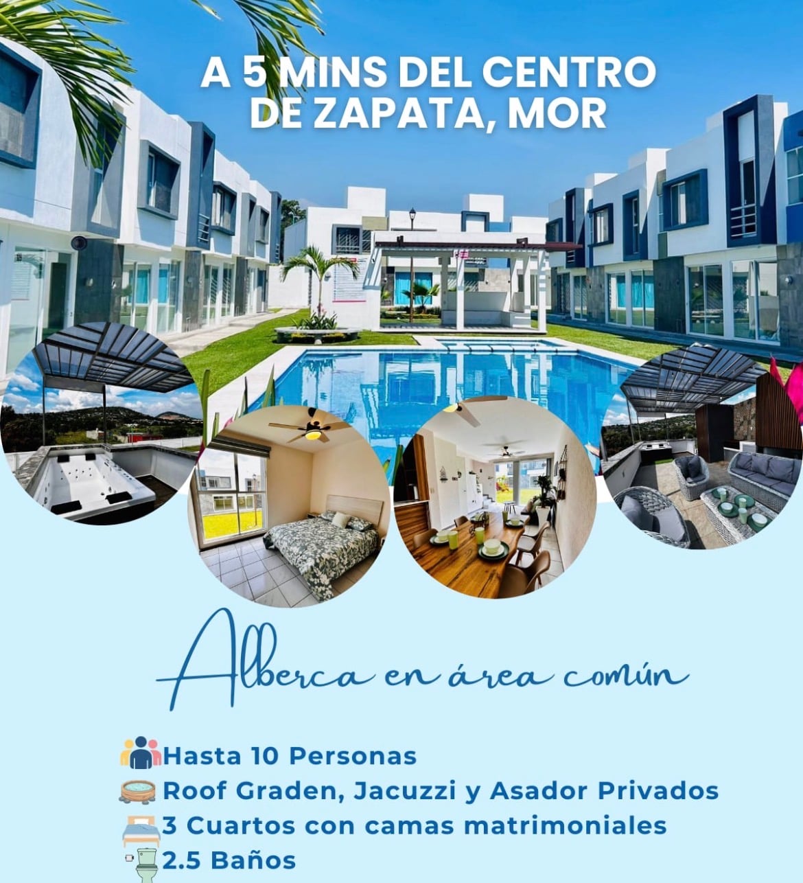 Hospédate cómodamente , casa moderna ubicada a pocos minutos de los principales jardines de eventos en Jiutepec ! Ambiente tranquilo , seguro y con acceso a alberca y áreas verdes !! Jardín Huayacan ,Ixcaya,Maroma , Begonias entre otros más !!! A solo 5 min zócalo de Jiutepec y 20 min de Cuernavaca , evita traslados largos y llega rápido a tu evento. Excelente ubicación en Jiutepec. Con fácil acceso a vialidades y servicios!!!!