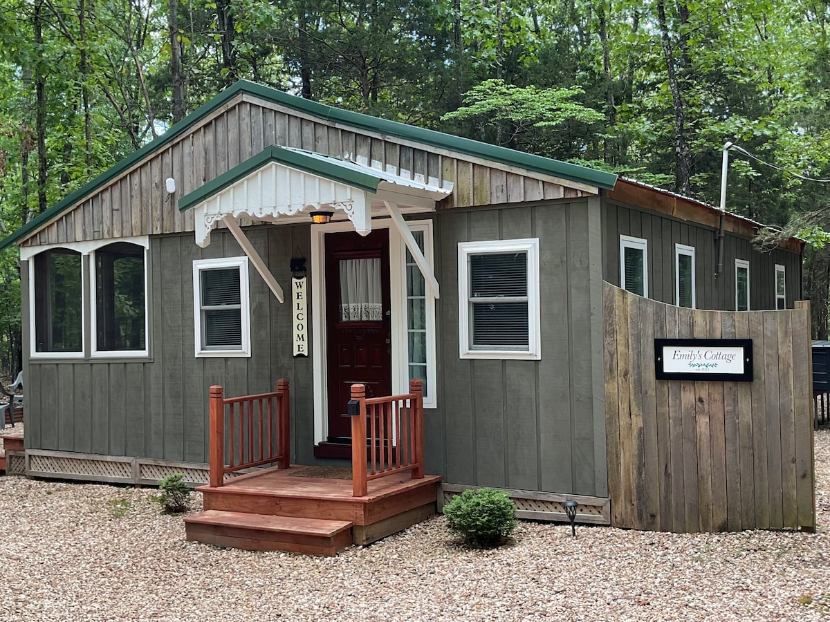 Emily's Cottage was Hand-Built-on-Site and is modeled after a 1930's style cottage but with all the Modern Conveniences. It sits in a peaceful wooded setting 2 miles down a quiet country road surrounded by peaceful pastures and woodlands. A unique & tranquil place. Emily's Cottage and Leona's Cottage are separated by a grove of trees allowing privacy for both but close enough to have family/friend gatherings that can accommodate a maximum of 8 guests.