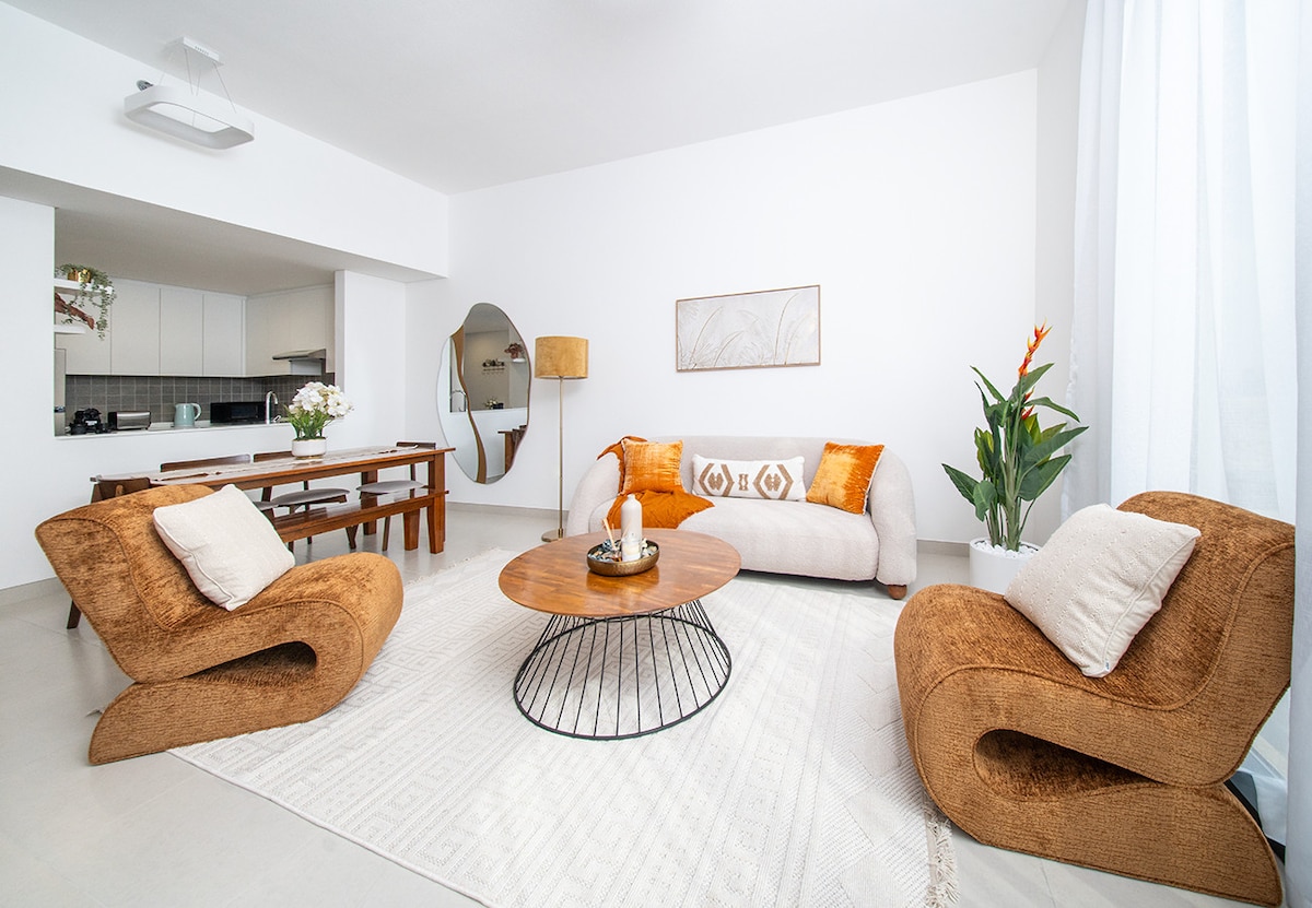 A four-bedroom villa at Ajmal Makan in Sharjah offers spacious and luxurious living with a contemporary design. The villa features large living and dining areas, an open-plan kitchen with modern appliances, and expansive windows that allow natural light to brighten the space. Each bedroom comes with built-in wardrobes, and the master bedroom includes an en-suite bathroom. The villa also boasts private outdoor areas like a garden or terrace, perfect for relaxation.
