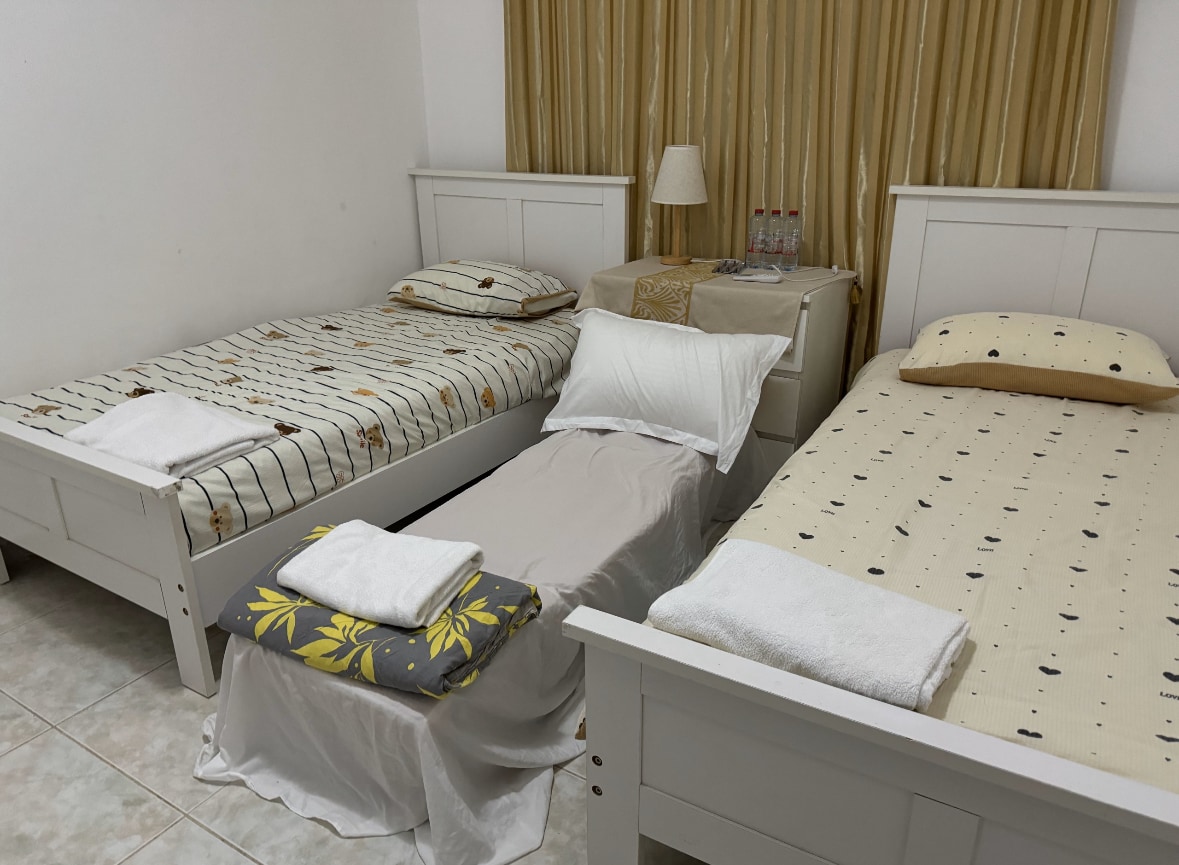 Two Bedroom Apartment with Breakfast : Modern Apartment Balcony 110 m² 01 King bed & 02 Twin Beds. kitchen facilities and washing machine . Flat-screen TV Air conditioning Private bathroom Free WiFi • Balcony • TV • Telephone • Satellite Channels • Safety Deposit Box • Iron • Ironing Facilities • Tumble dryer • Wardrobe or closet • Shower • Hairdryer • Free toiletries • Toilet • Slippers • Toilet paper • Outdoor furniture • Wake-up service • Towels • Linen •