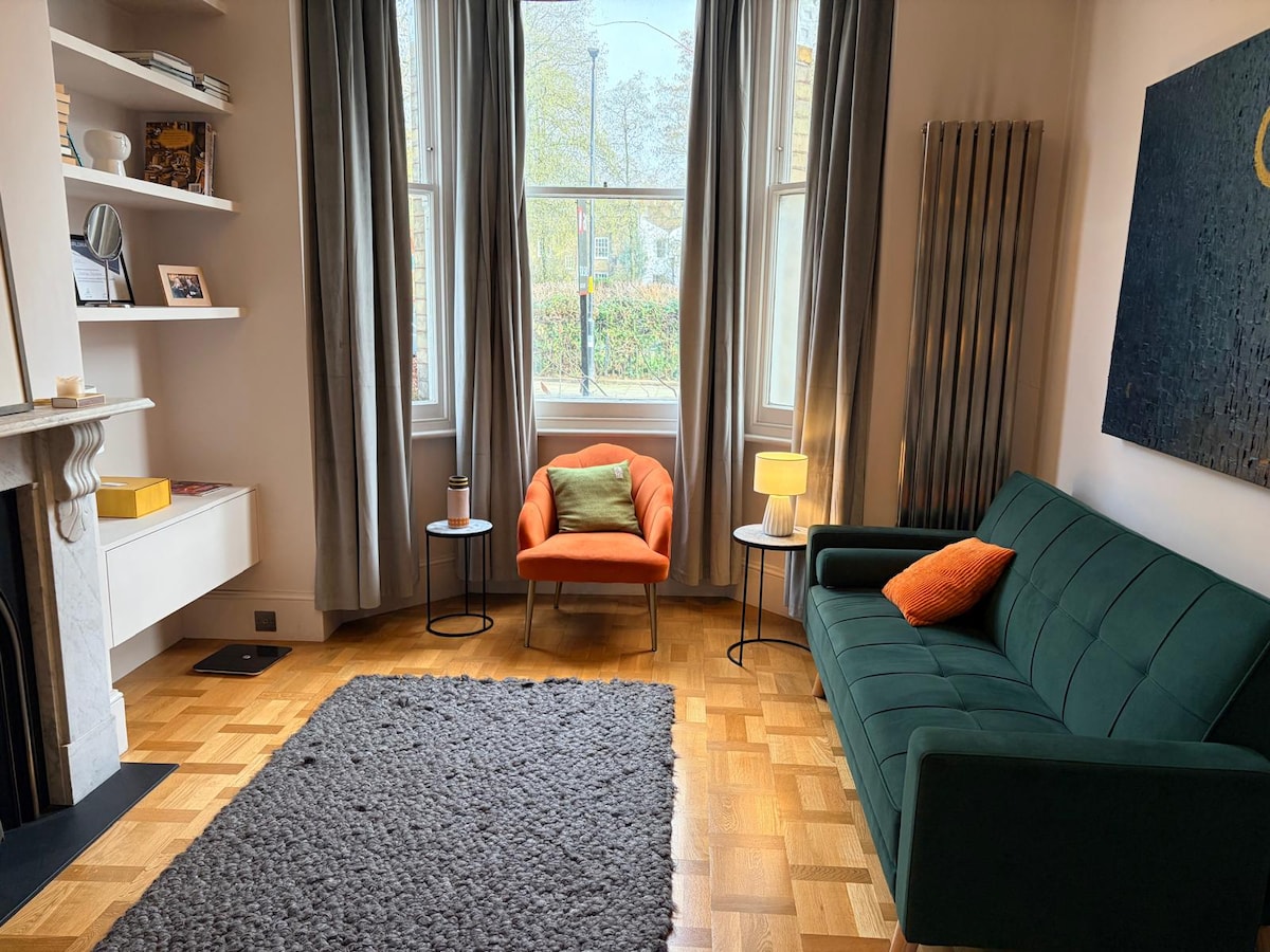 A large, comfortable guest suite, with its own private entrance, in a Georgian townhouse. Set in a great Islington location, with excellent transport links, green spaces, and the delights of Upper Street only 5 mins walk away. The space has a boutique-hotel feel with a super king bed, underfloor heating, contemporary furnishings, luxury wet room and a separate loo. We also provide a mini fridge, simple continental breakfast, and tea and coffee facilities. (Note that there is no kitchen.)