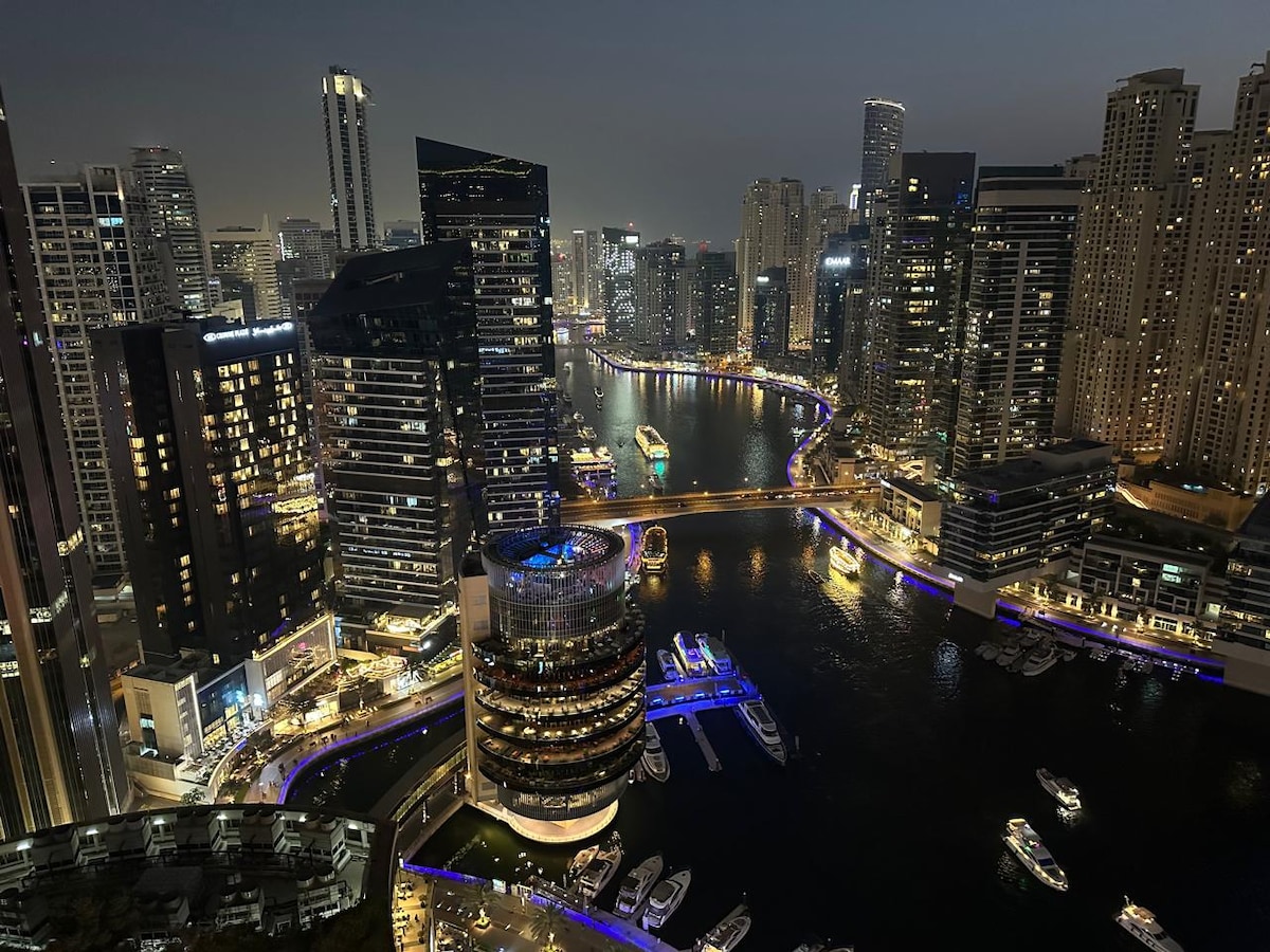 Welcome to our 2BR apt in Dubai JBR! Located in a renowned resort area, it's just 500m from Ain Dubai Ferris wheel & 3-min walk to the beach. The community offers a gym, pool, & 24-hr supermarket. Our apt is 5-min walk to Dubai Marina with yacht views, shopping centers, & dining options. On 20th floor, it boasts Marina views, a spacious living room with an 85inch 4K TV, fully equipped kitchen, cozy bedrooms, & high-speed Wi-Fi. Experience a comfortable, luxurious & unforgettable stay Welcome