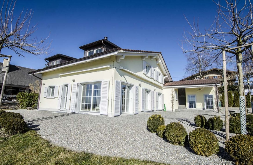Unser Einfamilienhaus befindet sich an einer Privatstrasse. Das mittlere Stockwerk ist für unsere Gäste eingerichtet mit 3 individuell und liebevoll eingerichteten Schlafzimmern mit bequemen Betten, einer vollständig ausgestatteten Küche, einem grossen, hellen Badezimmer (mit neuer Dusche) - wurden im Dezember 2023 renoviert - und einem Balkon.. Schnelles WLAN und Parkplätze sind verfügbar.
