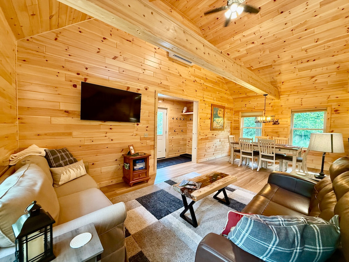 We have just added an outdoor sauna to this fabulous cabin in the woods behind our house. Although there is only 1 proper bedroom there is a sleeping loft with a queen size bed and window overlooking the hardwood forest. We also have a pull-out couch. Guests have complete privacy and everything provided for a comfortable stay This is a cabin with peaceful relaxation in mind....no loud parties or anything of that nature. Come and enjoy northern Michigan's beauty in all seasons.